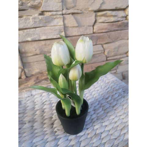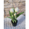 Tulipán Művirág 4 szálas virágcserépben 22cm #fehér