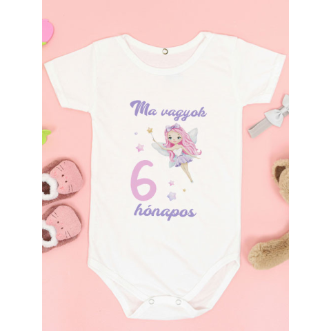 Fél éves lett a kis hercegnőd? Ünnepeljétek meg ezt a különleges pillanatot ezzel a Ma vagyok 6 hónapos feliratú tündéres bodyval! A fehér, rövid ujjú, 100% pamut anyagú babaruha csillagos részletekkel teszi még elbűvölőbbé az alkalmat. Anyagtípus: 10