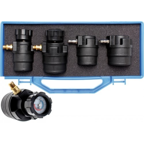 Turbófeltöltőkhöz, hagyományos kompresszorokhoz és G-feltöltőkhöz (spirál feltöltőkhöz) is használható; Ideális eszköz a proffeszionális és gazdaságos hibakereséshez. A készlet tartalma: 1 db 2 lépcsős nyomás adapter: 55 és 60 mm-es tömlő mérethez 1