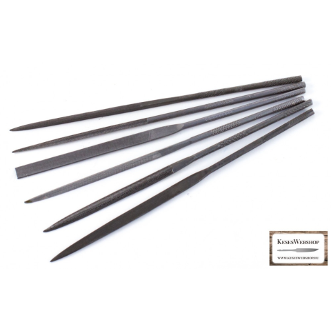 Tűreszelő készlet finom 6 részes Teljes hossz: 140 mm Nyél hossz: 65 mm Reszelő szélesség : 3 mm - 6 mm