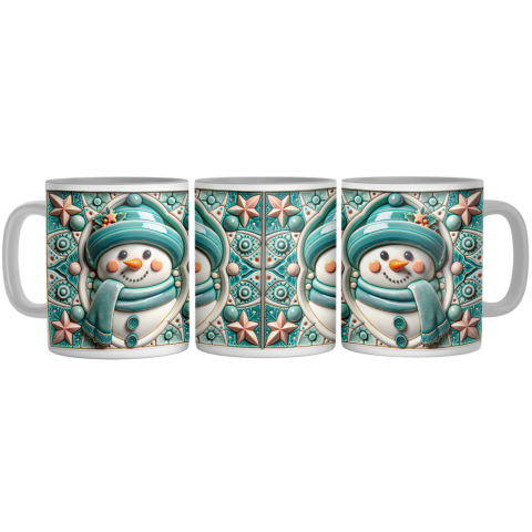 Türkizkék Porcelán Hóember - 3D Mintás Bögre
