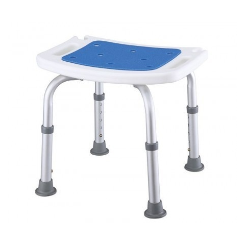 U346 - Tusolószék állítható csúszásgátlós Állítható magasságú tusolószék. 5 fokozatban állítható, 2cm a fokozatok közötti távolság. A szék lábai gumivéggel vannak ellátva. Az ülőke tartós műanyagból készült, melyen egy csúszásgátló ülőbetét is található,
