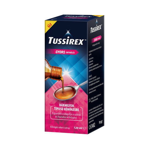 A Tussirex köhögés elleni szirup megbízhatóan és gyorsan enyhíti a megfázással járó száraz és hurutos köhögést egyaránt. Továbbá segít megvédeni a száj- és a garatnyálkahártyát azok szárazsága esetén.