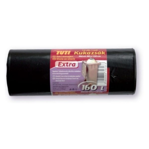 10db/tekercs 80x120cm Tuti extra erős kukazsák 160L Termék adatok: Szín: Fekete Űrtartalom: 160L Méret: 80x120cm Kiszerelés: 10db/tekercs Extra erősségű 160L kukazsák.