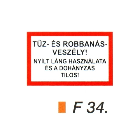 Tüz- és robbanásveszély! Nyílt láng használata és a dohányzás tilos! Cikkszám: F34 Kivitel: Müanyag Méret: 400x250mm