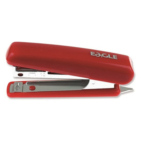 Tűzőgép EAGLE 2001BD mini asztali 8 lap No.10 piros Műanyag test, fém szerkezet. A tűzőgép hátsó részén kapocskiszedő résszel kiegészítve. Tűzési kapacitás: 80g/m2 papírból 8 lap, Tűzési mélység: 50 mm. Tűzőkapocs: No. 10. Zárt fűzés. 3 év garancia.