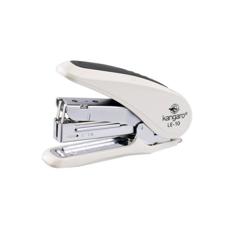 Tűzőgép KANGARO Less-10 asztali 10 lap No.10 csontfehér 50%-kal kevesebb erőkifejtéssel működtethető tűzőgép, normál tűzéssel. Kiváló felépítésű, formatervezett, fémszerkezetű tűzőgép hátulján fém kapocskiszedővel, mely tartja a kapcsot, s az így nem p
