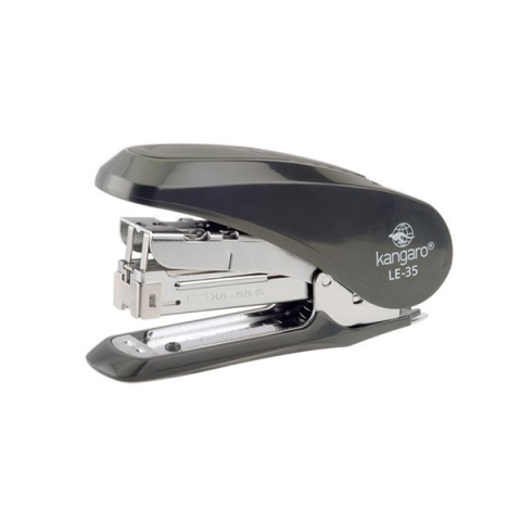 Tűzőgép KANGARO Less-35 asztali 30 lap 24/6 szürke 45%-kal kevesebb erőkifejtéssel működtethető tűzőgép, normál tűzéssel Fémszerkezetű, műanyag borítású, könnyen tölthető tűzőgép, mely hátulján fém kapocskiemelő található. Lekerekített formája elegáns
