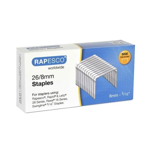 Tűzőkapocs, 26/8, horganyzott, RAPESCO - IRS268 - Tűzőkapcsok 24/6-os tűzőgépekhez - Prémium minőségű anyagokból, szigorú szabványok szerint készült Rapesco kapcsok optimális teljesítményt nyújtanak a legpontosabb tűzéshez -megbízható minőség