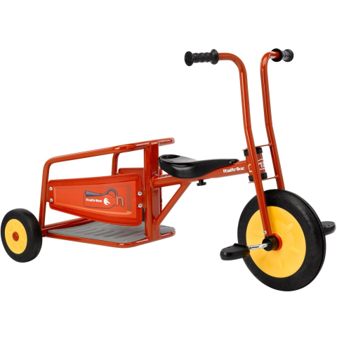 Tuzoltó autó kerékpár, szállító platóval, a jármu maximális terhelhetosége 70 kg, óvodai használatra tervezett stabil jármu