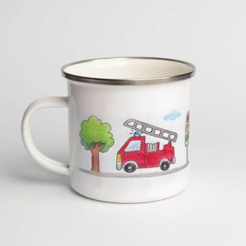 Tűzoltó autós zománcozott bögre bögrék, csészék termékleírás