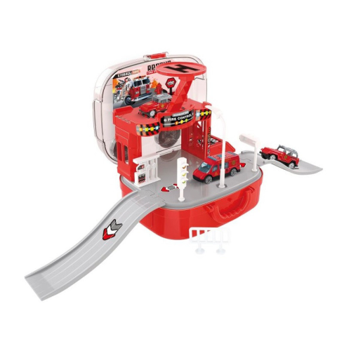 Tűzoltóállomás bőröndben 2v1 autópálya és játékautó 1 kép