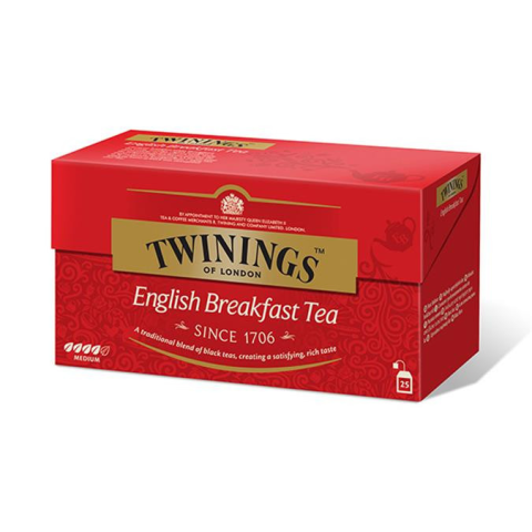 Fekete tea, 25x2 g, TWININGS English Breakfast Ezt a legkiválóbb indiai és ceyloni teafajtákból álló jellegzetesen angol teát erőteljes, frissítő ízek jellemzik. Ideális frissítő ital, melyet leginkább tejjel fogyasztanak, de citrommal is kiváló. Kisze