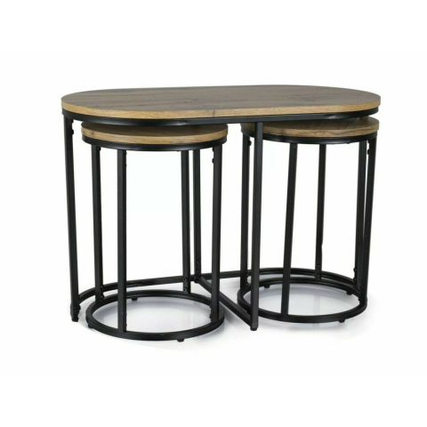 Teljes Twix Artisan Kerek Dohányzóasztal Szett MDF Tölgy Fekete Fém Vázzal termékleírás
