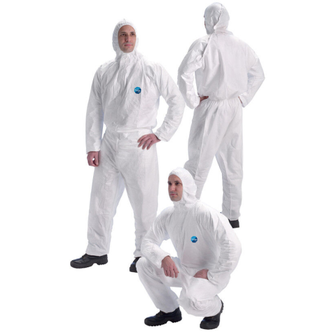 TYVEK DUAL OVERALL_S * TYVEK 400 DUAL fehér, 5. és 6. típusú, antisztatikus, kapucnis védőoverall* az overall hátrészén 41 g/m2 vastag, kiválóan szellőző SMS polipropilén anyag* az overall elején és az oldalrészeken kopásálló, folyadéklepergető Tyvek a