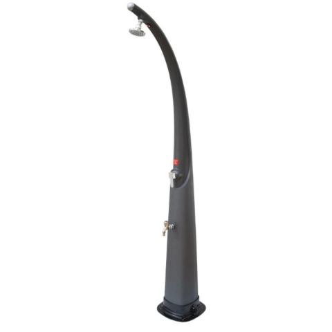 Leírás: Zuhanyoszlop fekete PPT/PP csőben szürke applikációkkal. A sötét szín arra ösztönzi a vizet, hogy a nap melegítse fel. A zuhanyoszlop 30 literes űrtartalmú, forgatható zuhanyfejjel, hideg/meleg víz keverővel, lábbal és közvetlen csatlakozással a k
