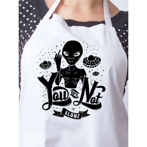 UFO ajándék, You are not alone kötény. Földönkívüli kötény miszerint Nem vagy egyedül ha Te is UFO rajongó vagy egy ilyen kötényt mindenképpen be kell szerezned. Egyedi mintával ellátott kötényünk praktikus és stílusos választás főzéshez, grillezéshez,
