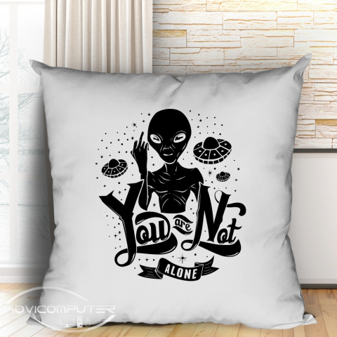 UFO ajándék, You are not alone párna. Földönkívüli párna miszerint Nem vagy egyedül ha Te is UFO rajongó vagy egy ilyen párnát mindenképpen be kell szerezned. A párna mérete 40x40 cm, a huzat praktikus húzózárral ellátott, így könnyen levehető és tiszt