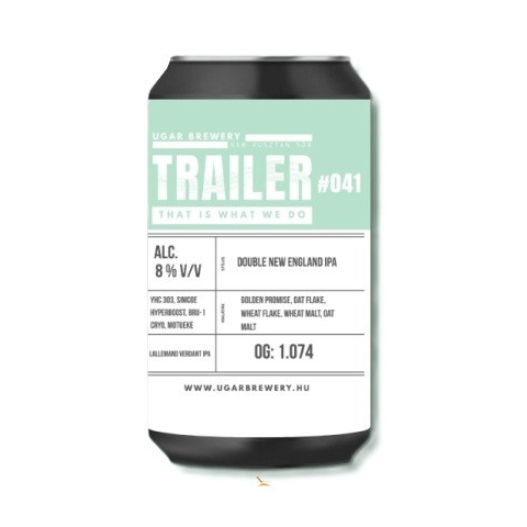 Dupla NEIPA - yhc 303, simcoe hyperboost, bru-1 cryo, motueka kolmókkal A Trailer sorozat nem hibázik ! Ugar Trailer 41 DOUBLE NEW ENGLAND IPA - THAT IS WHAT WE DO Az Ugar Trailer 41 egy autentikus dupla NEIPA: modern komlófajták (YHC 303, Simc