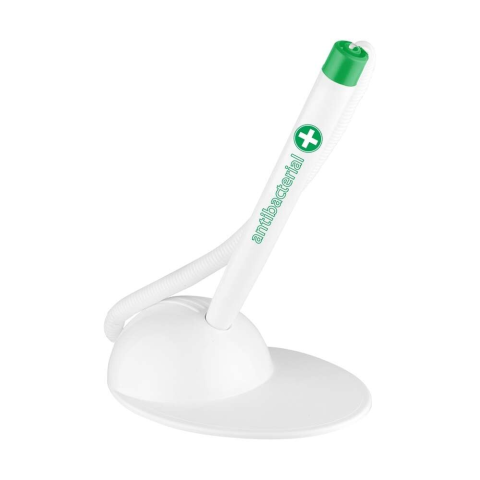 Antibakteriális ügyféltoll. A műanyag alkatrészek baktériumölő hatású ezüst-ionadalékkal készülnek. Cserélhető betét, csúszásgátlóval ellátott vagy ragasztássalrögzíthető talp. Vonalvastagság: 0,8 mm. Íráshossz: 2500 mm. Betét: X20. Katalóguskód: 1801
