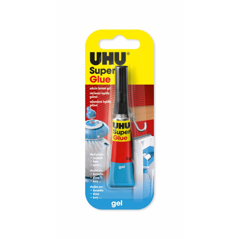 Az Uhu Super Glue pillanatragasztó - gél alkalmas fa, fém, műanyag, porcelán és gumi ragasztására akár függőleges felületeken is. Szupergyors és rendkívül erős, cseppmentesen adagolható.
