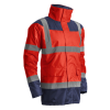 * PU-val vízhatlanított fluoreszcens Oxford 300D poliészter külső, taft belső * 140 g/m2 hőszigetelő poliészter bélés * rejtett kapucni illetve kétkocsis cipzár tépőzáras fedéssel végig az álló gallérig,hegesztett, vízhatlan varrások, kötött mandzsetta