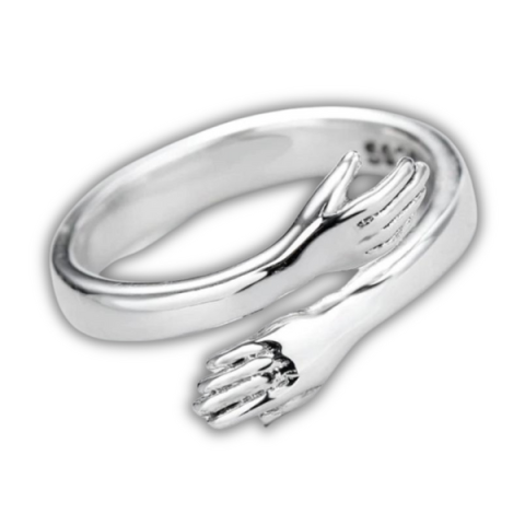 Egyedi ölelő kéz gyűrű ezüstözött ötvözetből, amely a szerelem és a törődés szimbóluma. Ideális ajándék szerelmednek, szerettednek vagy magadnak