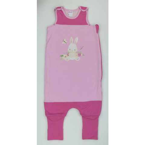 Ujjatlan tipegő hálózsák Nyuszi mintával 2 TOG Egy igazi kis kalandra indulhat a gyermeked ezzel a gyönyörű, pink színű cuki nyuszi mintával nyomott tipegő hálózsákkal. Az ujjatlan, vállon patentos, oldalán szétcipzározható, 2 rétegű hálózsák nemcsak ké