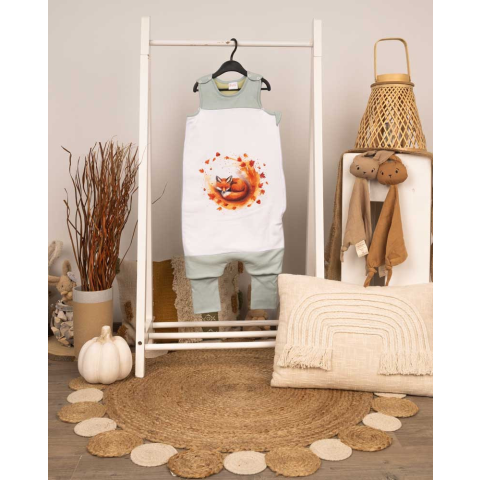Ujjatlan tipegő hálózsák Rókás mintával 3 TOG Egy igazi kis kalandra indulhat a gyermeked ezzel a gyönyörű, róka mintával nyomott tipegő hálózsákkal. Az ujjatlan, vállon patentos, oldalán szétcipzározható, 3 rétegű hálózsák nemcsak kényelmes, de praktik