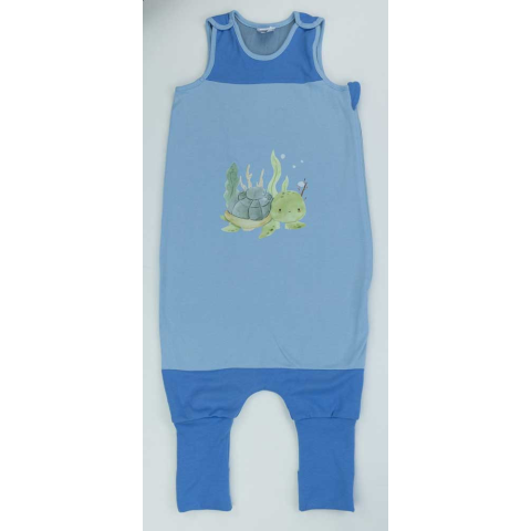 Ujjatlan tipegő hálózsák Teknős mintával 2 TOG Egy igazi kis kalandra indulhat a gyermeked ezzel a gyönyörű, kék színű cuki teknős mintával nyomott tipegő hálózsákkal. Az ujjatlan, vállon patentos, oldalán szétcipzározható, 2 rétegű hálózsák nemcsak kén