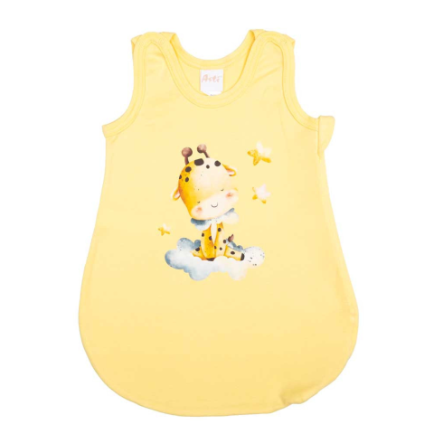 Ujjatlan vékony pamut hálózsák Zsiráfos mintával 1 TOG Öltöztesse álomba kisbabáját ebben a sárga, zsiráf mintás, ujjatlan hálózsákban! Az oldalt cipzáras, vállon patentos kialakításnak köszönhetően könnyedén felvehető és levehető, így az éjszakai pelenk
