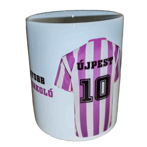Újpest szurkolói bögre felirattal. Egyedi Újpest bögre. A termék - jellege miatt - elsősorban személyesen vehető át, postázását a törékenysége miatt csak a megrendelő felelősségére tudjuk vállalni. A termék több változatban létezik, ezért a képtől kissé