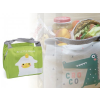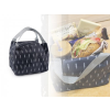 Újrahasznosított kevertszálas (70% újrahasznosított pamut, 30% újrahasznosított poliészter) hőszigetelt uzsonnás táska, roll top csavart, tépőzáras záródással. Szigetelés: 3 mm-es PE hab 12C PEVA-val.