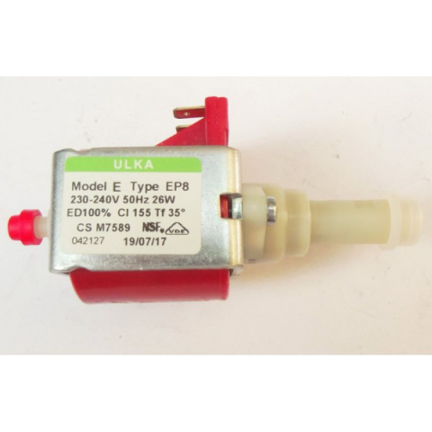 Ulka EP8 szivattyú 26W. Használatos italautomatákban, kávégépkben és takarítógépekben. Pl Sirius 1300W takarítógép... Maximális nyomás: 2,5 bar Áramlási sebesség: 1200 cm³/perc Kimeneti cső: Műanyag Bemeneti átmérő: 7 mm Kimeneti átmérő: 14 mm, műanyag