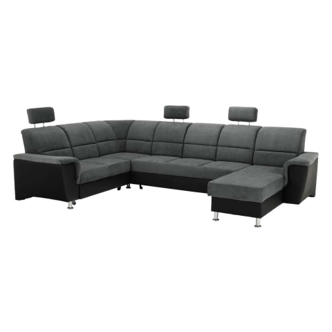 Teljes Ülőgarnitúra, műbőr fekete/szövet sötétszürke, balos, SANTIAGO U termékleírás