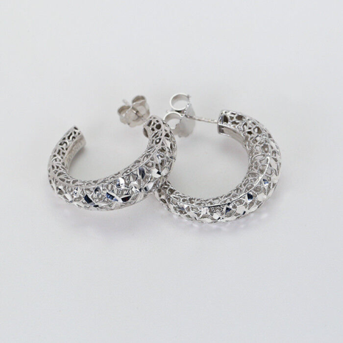 Elegáns ezüst karika fülbevaló - Stílus és ragyogás ✨ Ez az elegáns ezüst karika fülbevaló tökéletes kiegészítője lehet bármilyen öltözéknek. A finom kidolgozású, áttört mintázat egyedi és kifinomult megjelenést kölcsönöz viselőjének. Főbb jellemzők:...