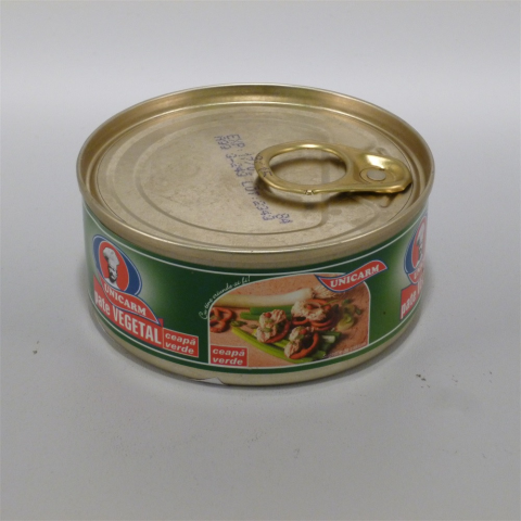 Unicarm Növényi Pástétom Zöldhagymás. Fehérjeszegény Növényi Pástétom. Kiszerelés: 110g. Hűtést nem igényel. Összetevők:víz,növényi olaj,szója növényi fehérje,só,búza keményítő,stabilizátor(Na-foszfát),sűrítőanyag(karagén,guar-gumi),emulgeálószer(szte
