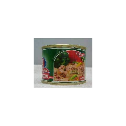 Összetétel: víz, növényi olaj(30%), szójafehérje, zselésítőanyag(karragén),keményítő, só, fűszerek, ízfokozó(nátrium-glutamát), szárított paprika(0,4%), természetes színezék:karamel, zöldség és gyümölcskivonat