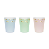 Paper cups Bows, packaged in sets of 2 pieces in colors: blue, green, and pink, with a capacity of approximately 220 ml (7.4 oz). Single-use product. Do not use for hot beverages. The drink cups contain markings required by the Commission Implementing