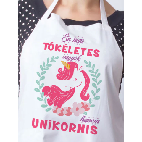 Unikornis ajándékok, Unikornis vagyok kötény. Én nem tökéletes vagyok, hanem unikornis feliratos kötény, igazi hercegnős, rózsaszín mintával, rendeld meg a legcsajosabb kötényt még ma! Mérete: 70x79 cm, anyaga vászon. Egyedi mintával ellátott kötényü