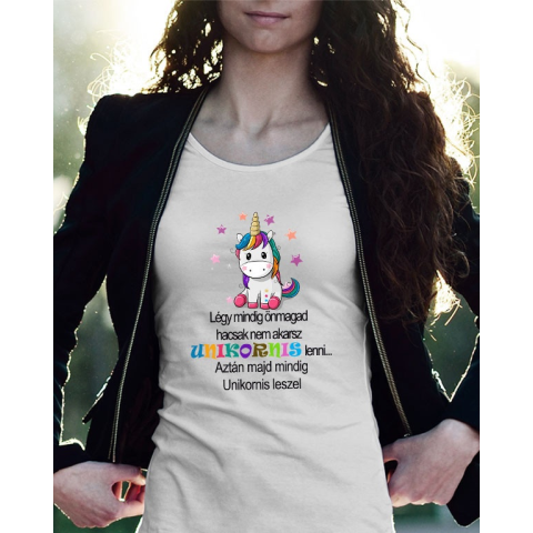 Unikornis ajándék, vicces unikornis női póló. Vicces unikornis bögre, ajándék unikornis és szivárvány imádóknak. Női póló Légy mindig önmagad, hacsak nem akarsz unikornis lenni felirattal. 100% pamut póló, többféle színben és fazonban. Kiváló minőségű