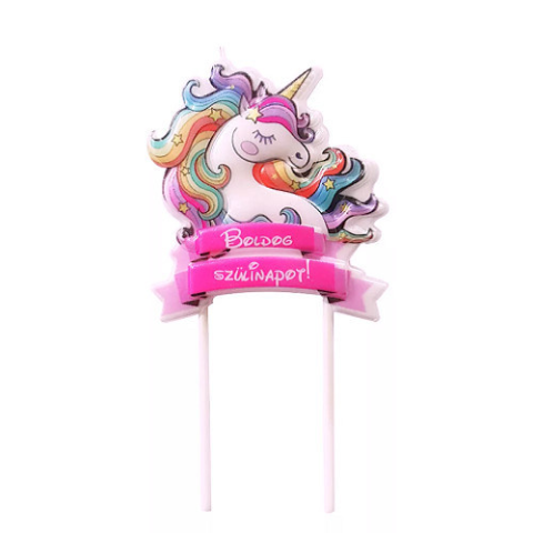 Boldog szülinapot feliratú, unikornis mintájú gyertya, mely segítségével minden kisgyerek a tortájára egy különleges világot varázsolhatunk. Tulajdonságok: Anyaga: paraffin és műanyag pálcika A gyertya magassága a pálcikával együtt: 14 cm