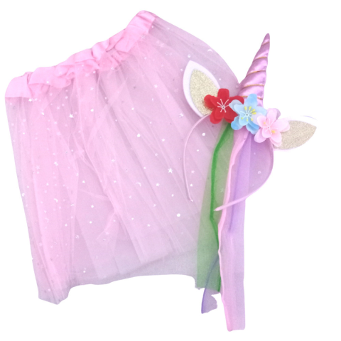 Unikornis jelmez rózsaszín tüllszoknyával.
