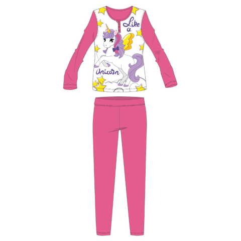 1 kép Unikornis hosszú vékony gyerek pizsama - pamut jersey pizsama - rózsaszín - 128