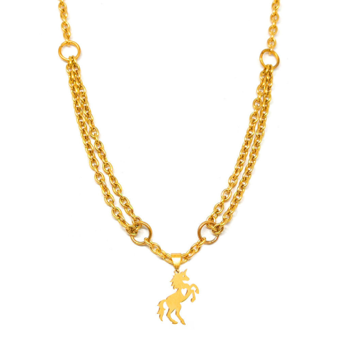 1 kép Unikornis nemesacél medál kétsoros nyaklánccal, arany színű