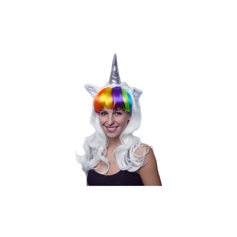 Korosztály: 3 - 6 év Öltözz be egyszarvúnak, és vedd fel a szivárványos fejdíszt! Az Unikornis paróka egy hosszú, hófehér és szivárványos hajjal készült egyszarvú műhaj, csillogó szarvval. A paróka átmérője állítható, akár gyerekek, vagy felnőttek is bátran felvehetik, mivel a játék univerzális méretű. Az Unikornis paróka ideális bármilyen egyszarvú jelmez