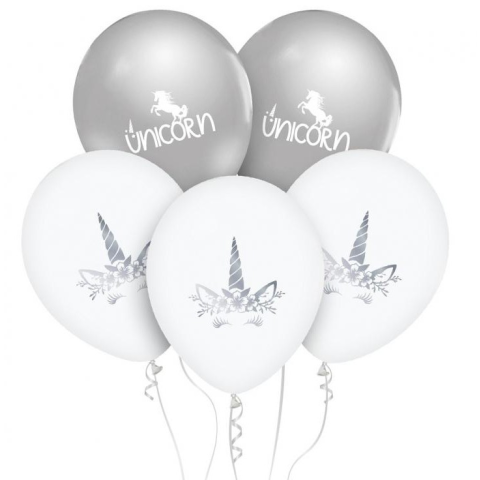 1 kép Unikornis Silver léggömb, lufi 5 db-os 12 inch (30cm)