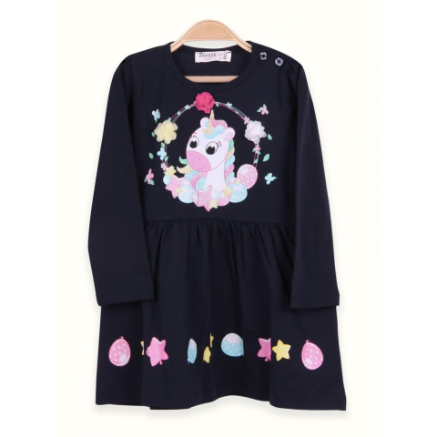 1 kép Unikornisos kislány egész ruha, sötétkék