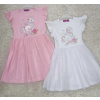 Rövid ujjú kislány egész ruha melynek felső részén unikornis minta található, a szoknya rész pedig tüll apró szivecskékkel díszítve. Könnyű és kényelmes viselet. Teljes hossz: 66 cm Szélesség: 32 cm Anyaga: 95 % pamut, 5 % spandex