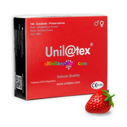 UNILATEX Eper ízű óvszer 144 db, latex, normál méret ANYAG: Latex. LEÍRÁS: Doboz 144 eper ízesítésű latex óvszerrel, tározóval. Az Unilatex óvszereket a leGMO (Genetically Modified Organisms): genetikailag módosított (gén kezelt) élőlény, amelynek